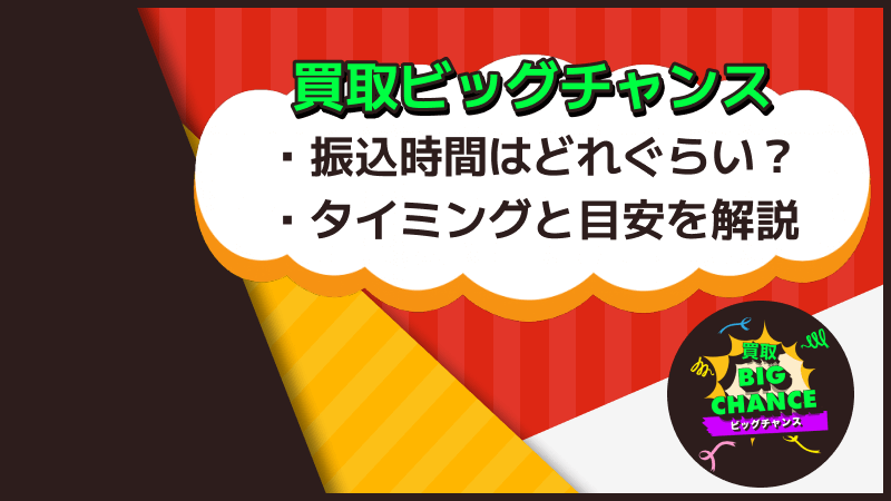 急ぎでの着金を希望する場合は、平日の日中(10〜16時ごろ)を狙って申し込むのが安心です。 - 買取ビッグチャンスで振込先の銀行によって振込時間に違いはありますか?